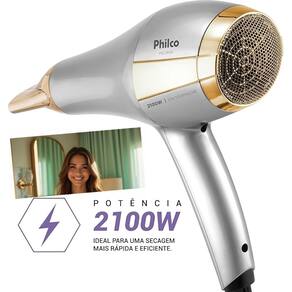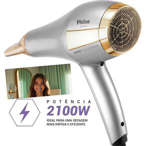 - **Modelo:** PSC2600 - **Marca:** Philco - **Cor:** Prata e Dourado - **Potência:** 2100 watts - **Voltagem:** 110 Volts ou 220 Volts (escolha a voltagem correta) - **Dimensões do produto:** 9,5 x 30 x 27,9 cm - **Peso:** 5 kg - **Motor:** DC - **Velocidades:** 2 - **Temperaturas:** 3 - **Função Cool shoot:** Sim - **Bocal concentrador:** Sim - **Tecnologia:** Tourmaline Íon - **Cordão elétrico:** 1,8 metros - **Certificação:** INMETRO: BRA20/01415 - **EAN:** 7891356113550 - **ASIN:** B0D8V39S9N - **Fabricante:** Philco