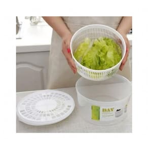 Centrífuga prática para vegetais eficientes e super rápidos. Nossa centrífuga de alta qualidade ajuda a separar facilmente os líquidos de sua salada com um mecanismo confiável, basta despejar o líquido. Em vez de perder tempo lavando e secando os vegetais à mão, com esta centrífuga de salada profissional, você reduzirá o tempo de preparo pela metade. Construção robusta: o material plástico reforçado com polipropileno tem resistência superior à quebra, o que pode evitar que a centrífuga se deforme quando forçada por algo pesado. Tanto a cesta quanto o recipiente externo são bem construídos, fáceis de montar e desmontar para limpeza quando necessário.\ nAlça elegante e eficiente: desfrute de uma operação fácil com uma alça fácil de girar projetada com um mecanismo suave e eficiente, as alfaces secam em um segundo. Além disso, a tampa tem um rack para entrada e saída de água sem remover a tampa. Multiuso: não é necessário comprar uma tigela adicional para servir seus vegetais, você pode servi-los diretamente nesta fonte e fazer uma refeição saudável todos os dias. O recipiente transparente ajuda você a saber quando a salada secou ao virar.