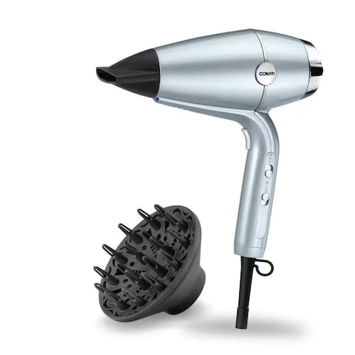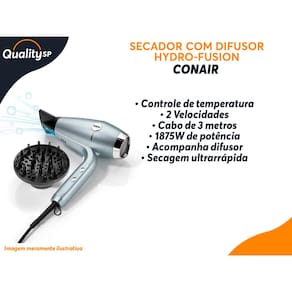 Secador de Cabelo Conair Com Difusor 2 Velocidades 2 Temperaturas 1875W Hydro-Fusion 220V - Prateado