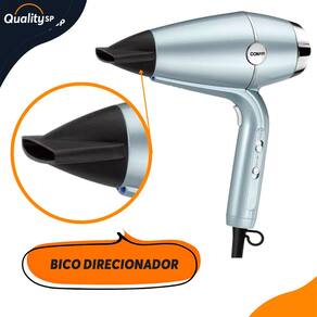 Ficha Técnica: • Marca: Conair • Modelo: 910BR • Voltagem: 220V (não é bivolt) • Potência: 1875W • Níveis de Temperatura: 3 (baixa, média e alta) • Velocidades: 2 • Função de Ar Frio: Sim • Tecnologia: Advanced Plasma (íons positivos e negativos) • Cor: Prateado • Tipo de motor: AC profissional • Cabo elétrico: Longo e resistente • Peso: Leve e ergonômico (ideal para transporte e manuseio) • Uso: Profissional e doméstico