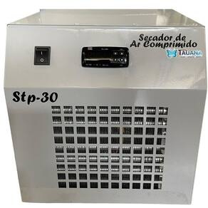 Secador De Ar Comprimido 30 Pcm Stp-30 Compressor 15/25 Pés Secador de ar comprimido mod. STP-30, capacidade Scfm / Nm 30/51 com purificador de ar embutido, descarga de impurezas automáticas, placa eletrônica com sistema inteligente para controle de temperatura de ponto de orvalho entre -35ºC. A +10ºC, com indicador de temperatura, gás de refrigeração R-134, conexão 1/2 BSP, pintura epóxi, estrutura em aço. Marca: Tauana