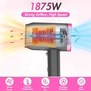 -?Motor potente de 1875 watts para secagem rápida?O secador de cabelo ANIEKIN é equipado com uma potência de 1875 W e alta velocidade de rotação para produzir um fluxo de ar forte e suave sem esforço. Combinado com a temperatura constante, o secador de cabelo garante secagem e modelagem rápidas para fornecer proteção eficiente e cuidado ideal para o cabelo.