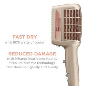 Secador de cabelo modelador 4 em 1 INFINITIPRO BY CONAIR sem frizz, secador de cabelo de 1875 W e 4 acessórios — sem frizz, sem problemas: liberte-se do frizz! Aumente o brilho e a capacidade de gerenciamento com o secador de cabelo 4 em 1 sem frizz, com tecnologia iônica avançada, que gera até 50% mais íons para maior capacidade de gerenciamento e brilho sem frizz. - Show Frizz Who's Boss: O secador de cabelo modelador INFINITIPRO BY CONAIR Frizz Free tem 1875 watts para uma tecnologia poderosa e de secagem rápida e cerâmica de titânio que cria calor uniforme para proteger o cabelo contra danos. - Controle de estilo: 3 configurações de aquecimento/2 velocidades para personalizar seu próprio estilo único, + botão Cold Shot para fixar o estilo no lugar certo! Inclui 4 acessórios para textura natural, corpo e brilho aprimorados, desembaraçamento e pente alisador de duas fileiras para estilos suaves e elegantes. - Líder em secadores de cabelo: de gorros tradicionais a secadores de alta tecnologia equipados com tecnologia de ponta, a Conair tem uma grande seleção de secadores de cabelo para cada tipo e estilo de cabelo - Conair Hair Care: Desde 1959, fabricamos pequenos eletrodomésticos inovadores, ferramentas de modelagem de cabelo e muito mais; Nossa linha de cuidados com o cabelo inclui secadores de cabelo, pincéis, ferramentas de modelagem e acessórios de cabelo de alta qualidade