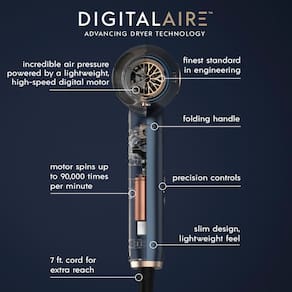 Secador de cabelo INFINITIPRO da Conair DigitalAIRE 2.0 | Secador de cabelo que elimina o frizz com difusor | Secador de cabelo com até 5 vezes mais velocidade para maior pressão de ar e poder de - Secagem rápida e potente: novo da Conair, este secador de cabelo otimizou o fluxo de ar do motor digital leve e de alta velocidade, oferecendo secagem e estilo mais rápidos. A tecnologia avançada de plasma ajuda a eliminar o frizz e os desvios para resultados suaves. - Sem danos causados por calor extremo: a secadora DigitalAIRE 2.0 tem secagem de alto desempenho com calor cuidadosamente controlado para resultados rápidos. (Danos extremos de calor ocorrem com temperaturas acima de 148 °C. Esta unidade tem uma temperatura máxima de 106 °C. Qualquer dano pode variar.) - Visor LED: o secador de cabelo DigitalAIRE 2.0 da Conair inclui um visor LED com leitura da configuração de estilo, lembrete de filtro limpo e voltagem dupla automática. - Acessórios de estilo incluídos: acessório Frizz Defense, difusor de volume e concentrador de precisão. - Uso mundial: leve e compacto com uma alça dobrável, este secador de cabelo tem tecnologia de tensão inteligente que detecta e se ajusta automaticamente à tensão externa enquanto mantém a potência total.
