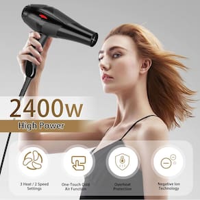 - 🔥?Desempenho poderoso?: Equipado com um robusto motor AC de 2400 W, este secador de cabelo é como uma tempestade pessoal para seu penteado, proporcionando um poderoso fluxo de ar e um efeito de secagem rápida, além de ser projetado para tratar seu cabelo suavemente, minimizando os danos.