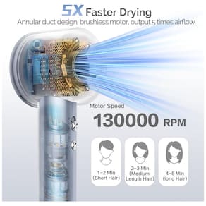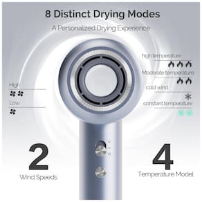 O secador de cabelo profissional Gaabor possui um motor brushless de alta velocidade de 130000 RPM, proporcionando ventos fortes de até 64 m/s, 5 vezes mais rápido do que secadores tradicionais. Com fluxo de ar amplificado em 5 vezes, gera uma corrente de ar concentrada de alta pressão e velocidade, secando rapidamente a água sem danificar os fios. Controle de temperatura inteligente para todos os tipos de cabelo, com 4 configurações de temperatura, 2 opções de velocidade e 8 modos de secagem. Design ergonômico leve e operação ultra silenciosa, pesando apenas 520g, evitando fadiga nas mãos, com nível de ruído de 57dB. Tecnologia iônica para proteção dos fios, neutralizando cargas positivas, equilibrando a eletricidade estática, mantendo a umidade, nutrindo, deixando os cabelos mais saudáveis, suaves e brilhantes. Acompanha bocal magnético para estilização precisa, design elegante e industrial. Ideal para presente.