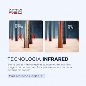 - Tecnologia INFRARED, que emite ondas infravermelhas que aceleram a secagem, preservando o fio
