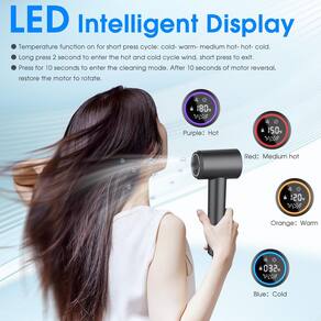 - ??Secador de cabelo de alta velocidade e secagem rápida?Este secador de cabelo de plasma de secagem rápida está equipado com motor sem escovas de alta velocidade de 110.000 RPM, oferece uma forte velocidade do vento atinge 22 m/s. O poderoso fluxo de ar pode secar o cabelo instantaneamente, 5 vezes mais rápido do que os secadores de cabelo tradicionais, e pode fazer o efeito de 30 segundos de secagem rápida para cabelos curtos e 5 minutos de secagem rápida para cabelos longos. Enquanto isso, o secador de cabelo possui processador inteligente de controle de temperatura integrado, monitoramento em tempo real e regulação de alta temperatura, para evitar superaquecimento e bloquear a umidade para um cabelo mais saudável