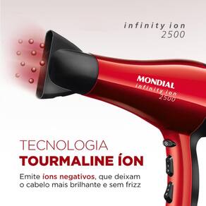 Seu cabelo lindo e saudável em pouquíssimo tempo! Conheça o Infinity Íon 2500 SC-12 da Mondial, que tem 2.000W de potência e proporciona mais agilidade na secagem dos fios. Além de economizar tempo, você ainda garante um aspecto saudável às mechas, com maciez e sem frizz, graças à tecnologia Tourmaline Íon.