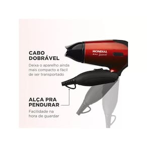 Secador de Cabelo Mondial Max Travel Vermelho e Preto 1200W 2 Velocidades Bivolt