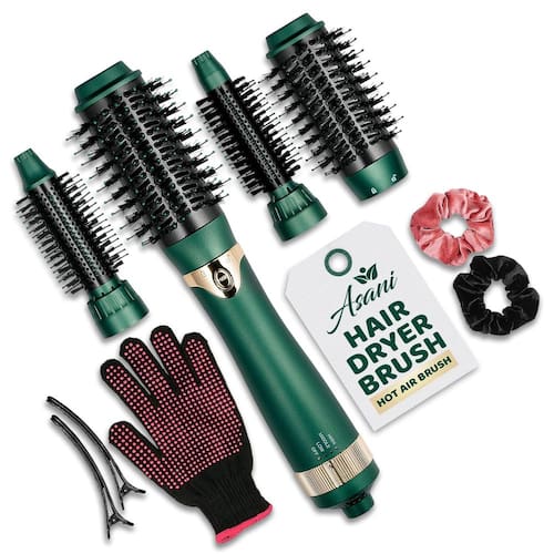 Eleve seu estilo de cabelo em casa com a escova de ar quente Asani, uma ferramenta versátil e profissional que permite criar vários penteados sem esforço. Essa ferramenta de beleza ideal não só economiza tempo, mas também dinheiro, tornando-a uma adição essencial à sua rotina. A escova de ar quente Asani é uma maravilha de design fácil de usar, com cabeças intercambiáveis para secar, alisar ou enrolar o cabelo com um simples toque de botão. Os diversos tamanhos de cano oferecem flexibilidade no estilo. O formato oval exclusivo, o cordão giratório de 360 graus, as cerdas de náilon tufadas e a alça ergonômica garantem um desempenho eficiente e confortável. A segurança é fundamental com a escova de ar quente Asani, operando a 110V—127V e equipada com um plugue de segurança ALCI para detectar desequilíbrios elétricos e evitar eletrocussão. A cabeça anti-escaldante protege seu couro cabeludo e a redução avançada de ruído garante uma experiência de usuário confortável. Diga adeus aos danos nos cabelos, pois as cabeças revestidas de cerâmica fornecem distribuição uniforme do calor, e a tecnologia de íons negativos de 360 graus condiciona e nutre seu cabelo, deixando-o irresistivelmente macio, suave e brilhante. - ESTILIZE SEU CABELO EM CASA: Revele o estilista que há em você com esta incrível escova de ar quente. Ele foi projetado para atender a todas as suas demandas de estilo de cabelo no conforto da sua casa. Economize tempo e dinheiro arrumando seu cabelo sozinho de forma eficaz. É a oferta perfeita para pentear todos os tipos de cabelo com rapidez e segurança. - ESCOVA DE AR QUENTE MULTIUSO: Esta escova multiuso permite secar o cabelo ou criar todos os tipos de penteados exclusivos. Ele vem com cabeças intercambiáveis que permitem secar o cabelo, alisar ou enrolar e modelar o cabelo. Os 3 barris vêm nos seguintes tamanhos: 1", 1,25" e um cano oval de 2" x 1,25. Trocar as cabeças da escova é um processo fácil que requer apenas o pressionar de um botão. Atenção: os diâmetros listados são apenas para o cano em si, sem o comprimento das cerdas. - DESIGN FÁCIL DE USAR: Este prático secador de cabelo foi projetado para um desempenho eficiente. Tem um design oval exclusivo que ajuda a suavizar o cabelo e evitar o emaranhamento. Suas bordas arredondadas criam volume, enquanto seu cordão giratório de 360 graus e cerdas de náilon tufadas o tornam fácil e confortável de usar. Tem uma alça ergonômica confortável que é fácil de segurar. - CARACTERÍSTICAS DE SEGURANÇA DEFINITIVAS: Operando a 110 V-127 volts, o secador Asani prioriza a segurança. O plugue de segurança ALCI detecta desequilíbrios elétricos, evitando a eletrocussão. A cabeça anti-escaldante protege o couro cabeludo e reduz o ruído de forma avançada. AVISO: Este produto não funcionará em tomadas de 220 a 240 V. Isso pode danificar o produto. - DANOS MÍNIMOS AO CABELO: Ao contrário dos secadores tradicionais, a escova de ar quente Asani com cabeças revestidas de cerâmica oferece uma distribuição uniforme do calor. Incorporando a tecnologia de íons negativos de 360 graus, ele condiciona e nutre o cabelo, deixando-o macio, suave e brilhante. AVISO LEGAL: Seus resultados variarão dependendo do tipo de cabelo, condição e nível de habilidade do usuário. Este produto pode não funcionar bem em cabelos curtos. Consulte nosso breve tutorial em vídeo na galeria de imagens do produto para ver o uso adequado.