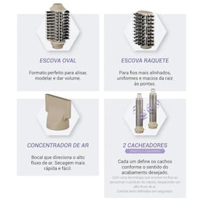 Acessórios inclusos: Escova oval; escova raquete; bocal concentrador; cacheadores