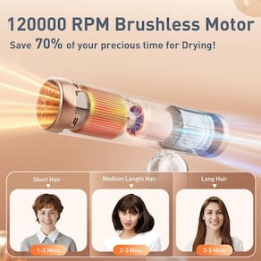 - ?Secagem 7x mais rápida, perfeito para manhãs ocupadas?O secador de cabelo Quico Travel possui um motor de alta velocidade de 120.000 RPM que proporciona fluxo de ar e pressão potentes, secando o cabelo 7 vezes mais rápido do que secadores padrão. Com velocidades de vento superiores a 70 m/s, reduz drasticamente o tempo de secagem, ajudando você a pentear rapidamente seu cabelo para manhãs agitadas ou passeios de última hora. Graças ao poder do secador, até mesmo o cabelo grosso e ondulado seca em apenas 5 minutos, liberando seu precioso tempo