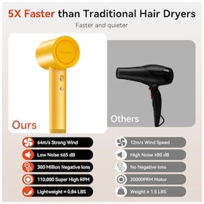 O secador de cabelo da Rizzdeek é equipado com um motor sem escova de alta velocidade de 110.000 RPM, proporcionando vento forte para secagem rápida dos cabelos, economizando mais de 50 vezes o tempo em comparação com secadores tradicionais. Ele libera uma alta concentração de íons negativos para neutralizar a eletricidade estática dos cabelos, reduzindo efetivamente o frizz e as pontas duplas, deixando os cabelos mais suaves e brilhantes. Possui um sistema inteligente de controle de temperatura avançado que monitora em tempo real a temperatura do vento, evitando que o couro cabeludo superaqueça e protegendo os cabelos. Seu design leve é mais leve do que a maioria dos secadores tradicionais, não causando fadiga ao segurá-lo por muito tempo. Vem com bocal magnético e bolsa de armazenamento, tornando-o prático para viagens e armazenamento. O bocal magnético é giratório em 360 graus, permitindo estilização precisa sem puxar ou inserir.