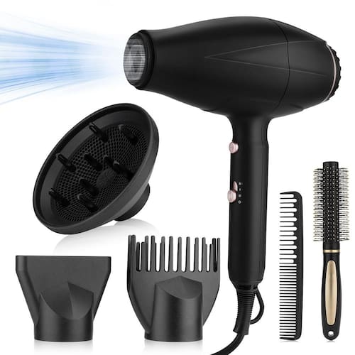 RESUXI -?Motor AC de 2200 W para secagem rápida?O secador de cabelo adota um poderoso motor AC que proporcionará um fluxo de ar mais forte para que você possa secar e modelar o cabelo duas vezes mais rápido em menos tempo. Com 3 configurações de velocidade, você pode escolher a configuração adequada para si mesmo. Com um botão de injeção a frio, você pode usar ar frio para ajudar a modelar os cabelos com facilidade. -?Proteção de segurança dupla?Por um lado, o secador de cabelo possui proteção por fusível e elemento de controle de temperatura para garantir a segurança. Por outro lado, o plugue de segurança dos secadores de cabelo para mulheres também pode garantir a segurança. Com fio giratório de 360°, você pode secar o cabelo com secador de cabelo portátil sem se preocupar com nada. -?3 acessórios para todos os tipos de cabelo?O bocal concentra e direciona o fluxo de ar, ideal para modelar com precisão; o difusor dispersa o fluxo de ar uniformemente, reduz o crespo e é adequado para cabelos encaracolados ou ondulados; o pente ajuda a alisar o cabelo, particularmente benéfico para cabelos grossos ou rebeldes. -?Secador de cabelo iônico negativo?O secador de cabelo profissional adota alta concentração de tecnologia de íons negativos que pode deixar seu cabelo úmido, macio e suave. Além da tecnologia cerâmica e da temperatura constante, o secador de cabelo pode proteger seus cabelos contra danos causados pelo superaquecimento, ajudar a suavizar o frizz e manter o brilho. O uso a longo prazo melhorará a qualidade do cabelo e o manterá em boas condições. -?Serviço pós-venda?O secador de cabelo profissional de salão atinge um equilíbrio perfeito entre temperatura e velocidade. Se você tiver alguma dúvida ou não estiver satisfeito após receber o produto, , faremos o possível para ajudá-lo. Estamos empenhados em fornecer a melhor experiência de compra.