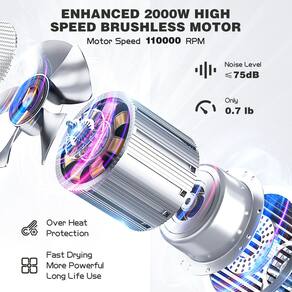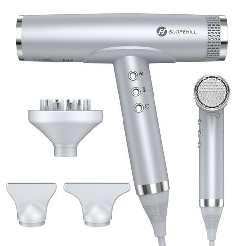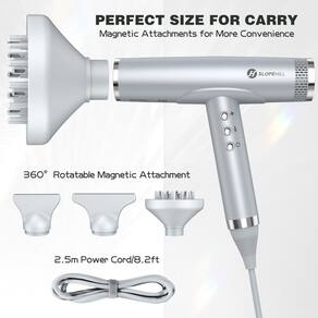 -?Motor potente de alta velocidade de 2.000 W, secagem super rápida?O secador de cabelo profissional Slopehill possui um fluxo de ar de 26 m/s e uma velocidade de 110.000 RPM, adequado para salão e casa. Os secadores de cabelo sem escova compactos e elegantes são mais adequados para mulheres