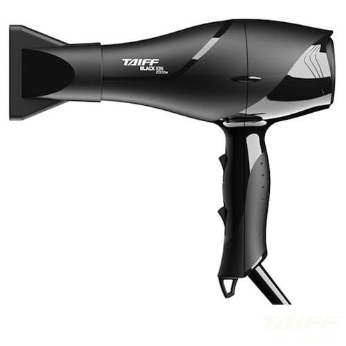 Secador Taiff Black Íon, potência de 2000W, ideal para uso pessoal, proporciona agilidade na secagem e modelagem dos fios, motor super leve AC profissional com maior durabilidade, contém chave seletora de temperatura podendo realizar o combinado de velocidades e temperaturas obtendo até 4 temperaturas. Emite íons negativos proporcionando cabelos com mais brilho, maciez e sem frizz. Com cabo de 1,80 metros que permite maior mobilidade.