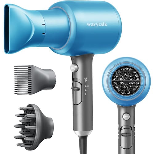 Secador de cabelo profissional Wavytalk - Dê forma a uma aparência brilhante e natural sem esforço - Motor potente de 1875 watts para secar o cabelo duas vezes mais rápido: o secador de cabelo Wavytalk é equipado com um motor eficiente e uma aerodinâmica interna avançada que garante um fluxo de ar forte e estável. Combinado com o calor constante, ele reduz drasticamente o tempo de secagem ao acelerar o processo de evaporação. Uma secagem mais rápida significa economia de tempo e menos danos ao cabelo - 3 acessórios para todos os tipos de cabelo: o bico concentra e direciona o fluxo de ar, ideal para modelar com precisão; o difusor dispersa o fluxo de ar uniformemente, reduz o crespo e é adequado para cabelos encaracolados ou ondulados; o pente ajuda a alisar o cabelo, particularmente benéfico para cabelos grossos ou rebeldes - Design compacto: o secador de cabelo possui um tamanho compacto e uma construção leve, enquanto sua superfície metálica polida ou textura fosca adiciona um toque de delicadeza ao design geral. Além disso, o secador melhora a aderência ergonômica, garantindo um uso confortável e evitando pressionamentos acidentais de botões. Este secador de cabelo está equipado com uma tela de poeira interna de alta densidade, que pode efetivamente impedir que o cabelo seja aspirado - Temperatura constante, mas não extrema: este secador de cabelo de 1875 watts assume o controle com 3 configurações de temperatura, 2 velocidades de fluxo de ar, incluindo uma injeção fria. (Pressione e segure o botão de ar frio para liberar o ar frio. Solte o botão para restaurar a temperatura anterior.) As configurações variáveis foram projetadas para personalizar o calor e o fluxo de ar conforme desejar e para flexibilidade de uso e resultados de qualidade de salão. - Proteção de segurança e baixa radiação: o secador de cabelo para cabelos naturais será desligado automaticamente quando a temperatura estiver muito alta, evitando riscos de incêndio se você esquecer de desligar o secador iônico após o uso ou se o secador estiver coberto por um pano ou papel quando estiver funcionando.. A adoção de tecnologia de construção de baixa onda magnética ajuda a reduzir a radiação do campo eletromagnético em mais de 50% do que outros secadores de cabelo gerais de 1400-1600W, amigáveis para mulheres grávidas e crianças