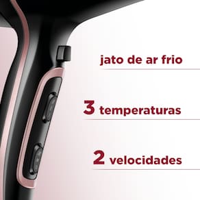 3 TEMPERATURAS + 2 VELOCIDADES : Escolha a combinação ideal para o seu tipo de cabelo.