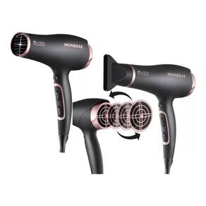 Secador De Cabelos Black Rose Line Sc-37 2000w Mondial 110v. Com design moderno e combinação de cores preto e rosa, este secador é um aliado poderoso para a praticidade no dia a dia, secando os cabelos mais rápido e com eficiência devido à sua alta potência de 2000W. A tecnologia Tourmaline Íon sela a cutícula dos fios, deixando os cabelos mais brilhantes e sedosos. Possui 2 velocidades e 3 temperaturas, totalizando 6 combinações que atendem a todos os tipos de cabelos e penteados. Além disso, é destacado por ser leve e com baixo nível de ruído. ESPECIFICAÇÕES: Marca: Mondial Modelo: Black Rose Modelo Alfanumérico: SC-37 Cor: Preto e Rosa Voltagem: 110V Potência: 2000 W CARACTERÍSTICAS: Cabo Giratório Velocidades: 2 Temperaturas: 3 Bocal Direcionador de Ar Tourmaline Íon Grade Traseira Removível Leve e com baixo nível de ruído DIMENSÕES E PESO: Altura: 29 cm Largura: 22,50 cm Profundidade: 9 cm Comprimento do Cabo: 1,5 m Peso: 544 g O QUE VEM INCLUSO? 1 Secador de Cabelos 1 Bocal Direcionador de Ar 1 Manual de Instruções