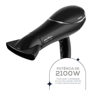 São 3 temperaturas e 2 velocidades, aliados a uma potência de 2100W. Além disso, acompanha acessório concentrador de ar com saída fina que concentra e direciona o calor, facilitando a secagem e modelagem dos fios.