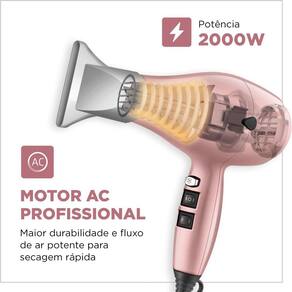 Especificações: - Marca: Mondial - Modelo: By Juliette - Cor: Golden Rose - Voltagem: 110V - Potência: 2000W - Níveis de temperatura: 2 - Controle de temperatura: Sim - Controle de velocidade: Sim - Grade traseira removível: Sim - Jato de Ar Frio: Sim - Material: Polipropileno - Fonte de energia: Energia elétrica
