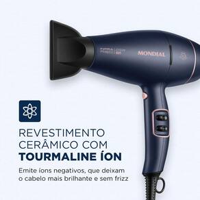 REVESTIMENTO CERÂMICO COM TOURMALINE ÍON: O secador tem revestimento de cerâmica com Tourmaline Íon, tecnologia que libera íons e fecha a cutícula dos fios, deixando-os disciplinados, macios e com brilho intenso.