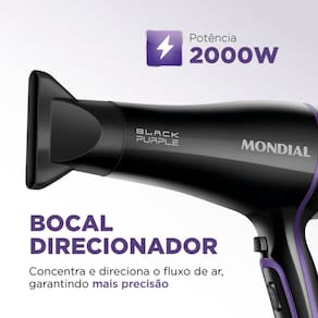 Tourmaline Íon: o mineral emite íons negativos quando aquecido, eeduz o frizz, além de dar brilho e maciez ao cabelo. Alta Potência: o secador de cabelo tem 2.000W e promove uma secagem rápida e eficiente. Grade Cerâmica: a grade frontal tem revestimento cerâmico e distribui o calor de forma uniforme, o bocal direcionador, o acessório direciona o fluxo de ar, mais precisão e facilidade para modelar o cabelo. 3 temperaturas + 2 velocidades ajuste de acordo com seu tipo de cabelo. MODELO: SCN-01