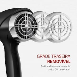 GRADE TRASEIRA REMOVÍVEL: Facilita a limpeza e aumenta a vida útil do secador de cabelo.