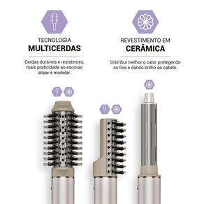 - 1 Secador Multifunções com 4 acessórios: 1 Cacheador Horário 1 Cacheador Anti -horário 1 Escova Oval 1 Escova Raquete 1 Bocal Concentrador de Ar
