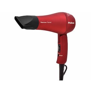 O melhor secador em qualquer lugar que estiver! O Secador de Cabelos Philco Titanium Travel é perfeito para suas viagem, pois seu tamanho a torna mais portátil. -Marca : Philco -Produto : Secador De Cabelos -Modelo : Philco Titanium Travel -Potência (Watts) : 127v - 1000w, 220v - 750w. -Consumo (KW/h): : 127V -1,0, 220v - 0,7 -Voltagem : Bivolt -Níveis de potência : 2 Níveis -Bocal Concentrador : Sim -Compacto : Sim -Anel Para Pendurar : Sim -Dimensões : 15 x 7 x 20 cm -Peso : 0.35 Kg