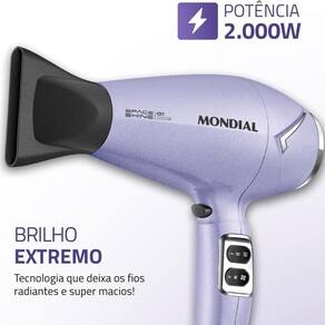 O secador de cabelo space shine sc-21 da mondial tem um design moderno e uma tecnologia que garante hiper brilho aos fios. Incrível né O tourmaline íon protege seus fios durante a secagem, reduz o frizz e proporciona um brilho radiante ao cabelo. Além disso, os 2.000w de potência oferecem uma secagem ágil e eficiente. Saiba mais sobre o sc-21 da mondial: