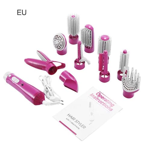 Características destacadas 1. Super portátil: projetado em tamanho prático, o pente de cabelo elétrico é recarregável. Muito prático para uso em viagens. 2. Função forte: pode ser como alisador de cabelo para modelar o cabelo, ajudando você a lidar rapidamente com cabelos bagunçados. Para criar um penteado delicado para você. 3. Segurança aprimorada: Projetado com revestimento de cerâmica, protege o cabelo contra danos, o que garante a maior segurança do pente de cabelo. 4. 10 acessórios: vem com 10 acessórios, cria um bom estilo de cabelo, grande, cacho médio, cacho pequeno, liso, milho, etc. 5. Alça: A alça ergonômica da escova do secador de cabelo foi projetada para o máximo conforto e facilidade de uso. O secador de cabelo para modelar. E o design de redução de ruído do Air Curling Combo pode reduzir o ruído. Veja menos