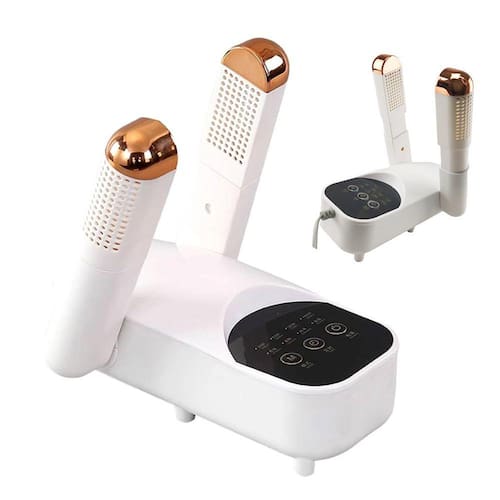 Este secador de sapatos apresenta um design dobrável de 90 graus que permite ajustar o ângulo de secagem ao formato e tamanho dos seus sapatos. Isso ajuda a evitar que os sapatos sejam deformados e danificados durante a secagem.