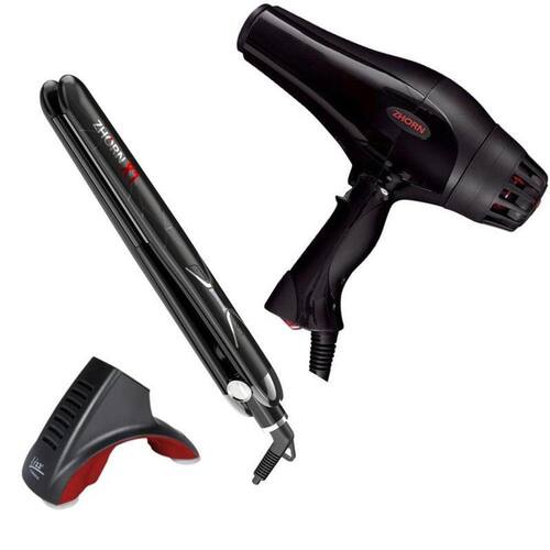 Este anúncio contém:01 prancha x1 styler black titanium 250 zhorn profissional 220v 01 secador de cabelo ergo fire 2000w zhorn profissional 220v 01 suporte para secador / modelador de cabelo universal lizzO secador de série ergo por zhorn é o secador de cabelo mais bem-pensado no mercado, com foco nas necessidades profissionais, prioriza três características principais: energia, conforto e durabilidade. Potência de 2.000w com performance de 2400w: produz maior fluxo de ar de qualquer secador em sua categoria, utilizando o motor de corrente contínua que possui o melhor desempenho no mundo.Gerador de íons negativos: trilhões de íons negativos ajudam a quebrar as moléculas de água para secagem mais rápida e também neutralizar partículas de carga positiva estáticos que elimina o frizz. Eles também trabalham para selar o folículo piloso, que trava na umidade; deixando-o com o cabelo mais brilhante, mais suave e sedoso.Botão de ar frio: fácil e confortável de pressionar o botão ergonômico localizado em local estrategicamente pensando, quando pressionado, instantaneamente corta o elemento de aquecimento enquanto ele está sendo pressionado pelo fluxo de ar fresco temporária.3 bocais e diferentes tamanhos: feitos em nylon são resistentes a calor e inquebráveis; três bocais de tamanhos diferentes acompanham o secador de cabelo, que podem ser girados 360 grausBotoes posicionados em local exclusivo e patenteado: os botões de temperatura e intensidade do ar estão localizados na parte inferior da alça do secador de cabelo, para o máximo conforto e controle durante o uso. Redutor de ruído patenteado: o baixo nível de ruído. Isolamento térnico patenteado: um fluxo constante de ar frio circula através de um pequeno espaço em torno da tampa do elemento de aquecimento mantém o corpo do frio do secador durante o uso. Além disso, o bocal do secador, não tem contato com o corpo garantindo que não haja transferência de calor. Perfeito para profissionais que preferem segurar o secador de pelo corpo do secadorExtremamente leve: apenas 0,560kg tornando nosso produto em um dos mais leves secadores de cabelo em sua classe. Resistente ao impacto: o corpo do secador é produzido em nylon resistente a impactos e o redutor de ruído acoplado na traseira que também funciona como proteção contra quedas feito de borracha e espuma, é muito resistente e pode absorver os impactos e choques. Sem mais quebras por causa de quedas com a traseira do secador instalaçao reforçada do motor: quando secadores caem, um dos pontos fracos mais comuns que se quebram são os suportes do motor. Reforçamos o nosso, para que ele não tenha mais um ponto fraco e possa resistir a impactos. Inmetro ocp005+A prancha x1 black titanium styler zhorn possui placas arredondadas de titânio e o inovador flooting plates no qual as placas se ajustam perfeitamente as mechas, modelando e deslizando sem danificar os fios. Sua temperatura máxima chega até 250 c 480f e é controlado por seu indicador lcd de temperatura com controle digital de 121 c a 250 c. Reduza de 16 para apenas 04 passadas por mechas em uma progressiva. Frizz nunca mais, graças a sua tecnologia iônica, o profissional poderá obter resultados excelentes, sem frizz e sem danificar os fios.Inmetro ocp005+Suporte para chapinha e modelador - resistente ao calor - lizz A melhor maneira de armazenar pranchas e modeladores.O suporte da lizz professional é um acessório desenvolvido para facilitar o uso dos equipamentos profissionais, em especial pranchas e modeladores.Características: Resistentes à altas temperaturas. Ideal para pranchas alisadoras e modeladores. Resistente à altas temperaturas. Ventosas de fixação. Ultra fino - design moderno Conteúdo da embalagem: 1 suporte professional. 1 certificado de garantia