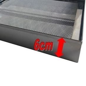 Dimensões: 40 x 60 x 6 cm Peso do escorredor: 1.9 kg Dimensões do fundo da tela: 0,5 cm