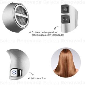 O Secador Fox Ion Pta possui um botão para jato de ar frio, ideal para fixar penteados e reduzir o frizz. Além disso, sua tecnologia de íons negativos sela as cutículas dos fios, deixando os cabelos incrivelmente macios e sedosos. Com 5 combinações de ajustes, incluindo 2 temperaturas e 2 velocidades, você tem total controle sobre o resultado final.