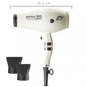 Aliado a um tamanho ideal para transporte, o Parlux 385 PowerLight® pesa apenas 468 gramas sem o cabo. E seu design ergonômico se traduz em um manuseio confortável, seguro e produtivo.