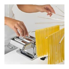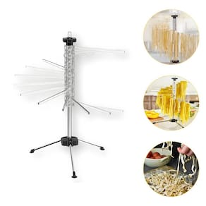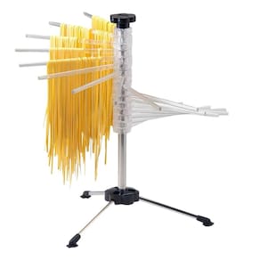 Secador Varal para Massas é a escolha perfeita para quem busca eficiência ao fazer massas caseiras. Com 16 hastes flexíveis de acrílico e um suporte resistente de inox, ele oferece muito espaço para secar até 1,8 kg de massa de forma organizada.Suas dimensões (30 x 20 x 45 cm) e peso (0,68 kg) fazem dele um acessório leve e fácil de guardar, sem ocupar muito espaço. A base de 3 pernas oferece boa estabilidade, e o botão superior permite estender as hastes rapidamente. O bastão embutido no tubo central é útil para manusear a massa seca com segurança. Além disso, o design transparente das hastes de acrílico dá um toque moderno à sua cozinha.Especificações Item:Altura: 45cmLargura: 20cmComprimento: 30cmPeso: 0,680kg (aprox.)Cor: TransparenteEspecificações Caixa:Altura: 38cmLargura: 8,5cmComprimento: 12,5cmPeso: 0,720kg (aprox.)Item incluso:1 Suporte, base com Tripé, bastão para manuseio, 16 Hastes.Dicas:1° Limpeza facilitada: você pode limpá-lo com a parte macia da esponja e com sabão neutro.2° Evite limpar com produtos químicos ou abrasivos;3° Quando não for utilizar, dobre e guarde em local seguro para maior durabilidade do produto.