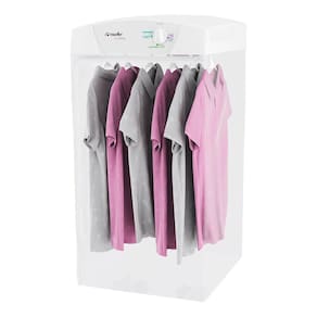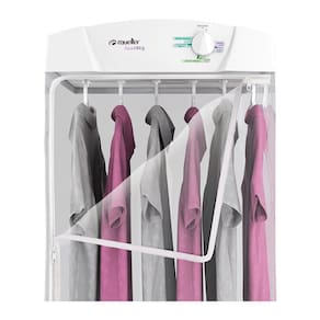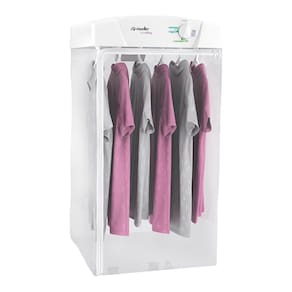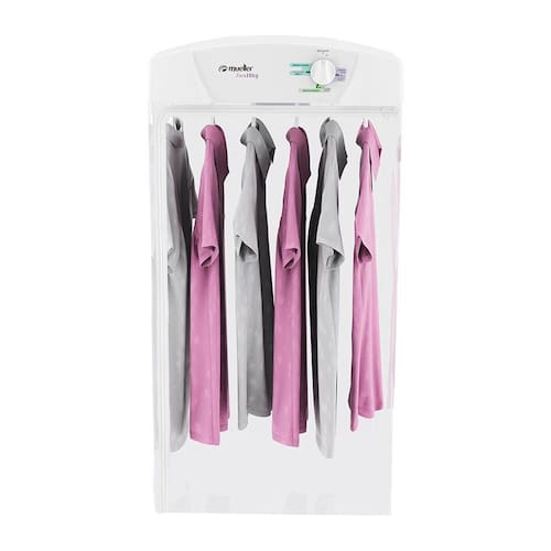 Características: Marca: Mueller Modelo: Sun Tipo: De parede Capacidade: 8 Kg 110V ou Câmera de secagem: PVC Gabinete: Em plástico especial Temperatura: 60 graus C no interior da câmara. Abertura: Com 2 zíperes Sistema de circulação de ar: Sim Sistema giro fácil: Sim Timer: Sim, ciclo de timer de 45 a 120 minutos Aletas: Sim, reaproveitam o ar quente e protegem o motor de possíveis infiltrações de água Cabides: 6 cabides removíveis Ciclo amaciante: Sim, nos 15 minutos finais e o ar frio amacia as roupas. Potência: 1175 Watts