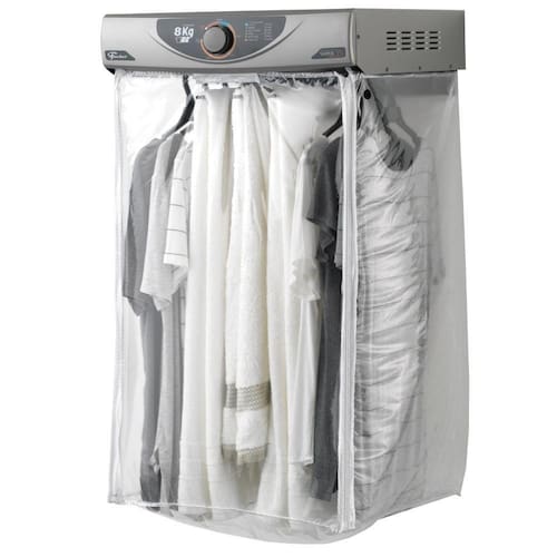 Possui timer com até 120 minutos (2h) e Ciclo Amaciante de 15 minutos, (com ar frio), permitindo que suas roupas fiquem macias! Conta também com a opção de Timer Contínuo, para essa função, basta girar o manipulador no sentido anti-horário para a secadora ligar pelo tempo que desejar! E para fechar, vale ressaltar que seu painel é muito fácil de usar! Acompanha 3 Varais Fixos e 6 Cabides Removíveis, com fechamento por zíper e velcr-o! Funções e aspectos que além de praticidade para seu dia a dia, proporciona beleza!