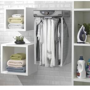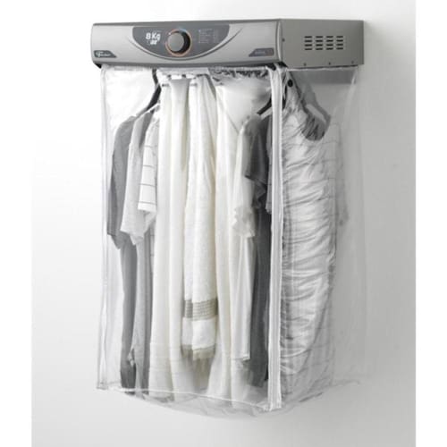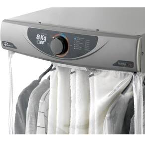 - Marca: Fischer - Modelo: 28200-63978 (220V) - Tensão: 220V - Potência instalada: 1150W(220V) - Potência do Motor: 38,7W(220V) - Consumo energetico: 1,15kWh (220V) - Corrente: 5,2A (220V) - Vazão: 5,0m/s - Controle: eletromecânico - Capacidade roupas úmidas: 8 kg - Peso líquido: 5,50 kg - Peso Bruto: 6,09 kg - Volume: 0,057m - Acompanham o produto: manual de instruções e 6 cabides - Função: secar - Temperatura máxima de 65C no interior do bag (câmera de secagem) - Timer com ciclo máximo de 120min (2h), sendo15 minutos c/ ar frio (ciclo amaciante) e ciclo contínuo - Bag em PVC cristal - Fechamento por zíper - Frontal em termoplástico com indicações dos tempos de secagem - Corpo externo em aço pintado - 3 varais fixos - 6 cabides removíveis - Produto Certificado pelo INMETRO (Portaria 371) - Garantia: 12 meses