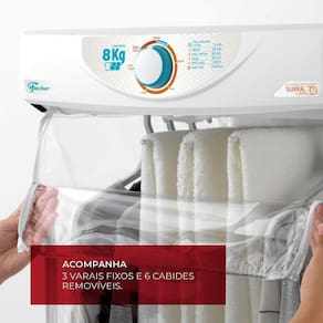 Simplifique sua rotina com esta eficiente secadora Super Ciclo Fischer. Ela comporta até 8 kg de roupa em uma das maiores câmaras de secagem, agilizando até as maiores pilhas de roupa.