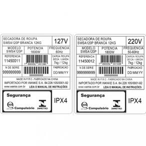 Capacidade de secagem: 12kg