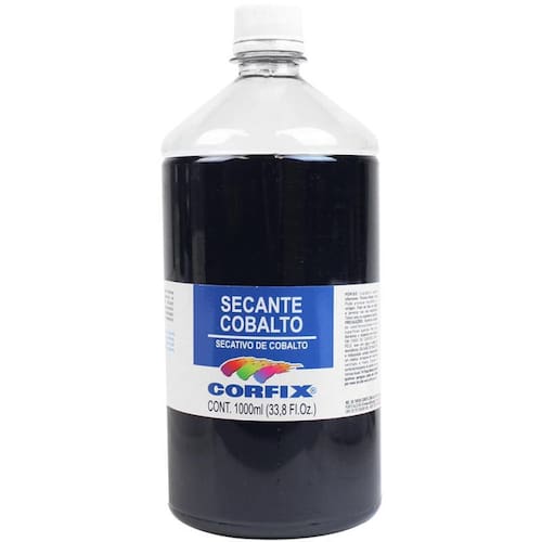Secante Cobalto 1 Litro Corfix Secante a base de cobalto que atua na superfície da pintura. Indicado para acelerar o tempo de secagem das tintas a óleo, preferencialmente em camadas finas. Deve ser utilizado em pequenas quantidades, pois o excesso pode alterar o brilho e a fixação da tinta, causando craquelamento, enrugamento e formação de fissuras na pintura. Pode ser diluído em Aguarrás Mineral Corfix. Ficha técnica - cor: não se aplica Marca: Não Informado Ean: 7896011703169