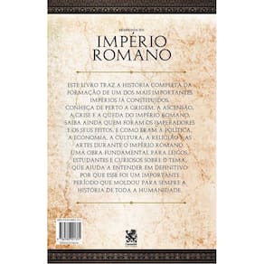 Este livro traz a história completa da formação de um dos mais importantes impérios já constituídos. Conheça de perto a origem, a ascensão, a crise e a queda do Império Romano. Saiba ainda quem foram os imperadores e os seus feitos, e como eram a política, a economia, a cultura, a religião e as artes durante o Império Romano. Uma obra fundamental para leigos, estudantes e curiosos sobre o tema, que ajuda a entender em definitivo por que esse foi um importante período que moldou para sempre a história de toda a humanidade.