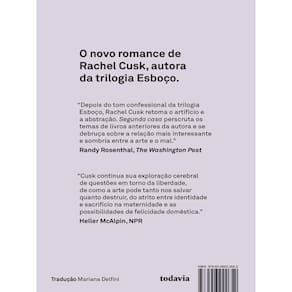M, escritora de meia-idade e de pouca expressão, está em chamas. É o fogo, pelo menos, uma das imagens a que ela recorre para tentar explicar os acontecimentos que abalaram a vida pacata que leva ao lado do marido na propriedade em que moram, às margens de um pântano. Quem incendiou a rotina familiar foi L, um artista plástico que se hospeda na cabana em que o casal costuma receber artistas — a segunda casa. M está obcecada por L, e deposita nele expectativas diversas. A relação intrincada dos dois se desenvolve durante essa espécie de residência artística, compartilhada também por Brett, moça que L leva consigo, e pela família de M. Num relato retrospectivo e por vezes lacunar, M conta episódios da estadia de L no pântano, temperando a narrativa com reflexões e experiências do passado. Temas caros a Rachel Cusk, como maternidade, arte, relacionamentos amorosos e a vida profissional da mulher reaparecem em Segunda casa. No lugar da observação atenta de Faye, narradora da trilogia que garantiu a Cusk lugar de destaque na prosa contemporânea, vemos neste romance uma mulher se contorcendo com sua subjetividade, lançando faíscas de dúvida sobre si mesma.