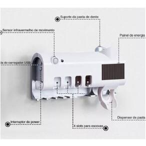 Segurança em cada escovação: porta escova de dente com esterilizador uv automático led. o esterilizador de escova de dente é um porta-escova multifuncional inteligente que limpa E protege sua região bucal. quando você não estiver usando a escova de dentes, esterilize a mesma. o sistema de sensor infravermelho inteligente é ativado quando uma pessoa se aproxima e esteriliza depois que A pessoa sai. o esterilizador de escova de dentes possui um sistema de carregamento solar que não requer luz Solar direta e pode ser carregado quando exposto à luz. armazenamento de energia da bateria de lítio, economia de energia e proteção ambiental. livre-se completamente das das tomadas. nenhuma fonte de alimentação externa é necessária pode-se usar cabo usb , tornando o ambiente do banheiro Bonito. luz ultravioleta + fotocatalisador esterilizador de escova de dente. é um porta-escova multifuncional inteligente que limpa e protege sua região bucal. Características do produto: - porta escova de dentes com esterelizador uv - empremedor de pasta de dentes - lâmpada de led germicida de onda curta - esterelização em 6 minutos - tamanho: alt:12cm x larg:5cm x comp:19cm - peso aproximado: 250g - entrada: dc5v - voltagem: dc3.7v - capacidade bateria: 1200mah - placa de energia solar Marca: Não Informado