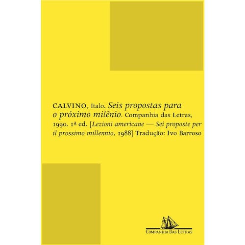 Declaração de ética, mais que de poética, as conferências que Calvino preparou para a Universidade Harvard representam o testamento artístico de um dos protagonistas literários do fim de milênio. Em meio à crise contemporânea da linguagem, cada vez mais aguda, o grande escritor italiano identifica as seis qualidades que apenas a literatura pode salvar - leveza, rapidez, exatidão, visibilidade, multiplicidade, consistência -, virtudes a nortear não apenas a atividade dos escritores mas cada um dos gestos de nossa existência. Feitas de divagações, memórias, trechos autobiográficos, as Seis propostas de Calvino constituem um precioso legado do milênio para as gerações do ano 2000.Prêmio Jabuti 1993 de Melhor Produção Editorial de Obra em Coleção