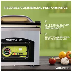Vácuo de Câmara VACMASTER VP230 O VP230 da VacMaster possui uma série de recursos, incluindo uma barra de vedação de com fio de vedação dupla para proteção extra, partida automática ativada simplesmente fechando a tampa e muitos outros recursos fáceis de usar, tornando esta máquina perfeita para restaurantes, instituições culinárias e outros negócios relacionados a alimentos. Também é uma ótima máquina de nível básico para caçadores, pescadores e outros usuários domésticos que dependem de obter uma ótima vedação para preservar sua caça, captura ou refeição. É fácil de usar e pode até lidar com líquidos sem nenhum problema. O selador a vácuo de câmara VP230 é para VOCÊ Características Arranque automático Serviço pesado,tampa transparente Barra de vedação de com fio de vedação dupla Configurações de tempo ajustáveis Parar e vedar a QUALQUER momento Indicador de pressão de fácil leitura Bomba de óleo rotativa de 1, 2 HP Trava da tampa para fácil zenamento Inclui 60 bolsas de câmara diversas 1 Placa de Enchimento Guia do Usuário Marca: Não Informado